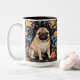 Cute Pug Elegant Colorful Floral Två-Tonad Mugg