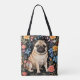 Cute Pug Elegant Colorful Floral Tygkasse
