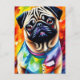 Cute Pug-Hund i ett färglöst Jacka Vykort