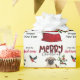Det upprepade mönster på denna söta julomslutning papper är en bild av en förtjusande Pug-hund som pissar ut från en presentsäck i Helgdag. Bakom honom ligger en sprit av grå och röda bär. En röd och svart bullfinkfågel kommer snart att landa. Stiliserad röd och svart buffelpläterad text säger GOD JUL och "Gott nytt år" är mörk grönt. Din egen namnteckning finns i två fält för att du ska kunna anpassa dig. Se till att du ser de matchande presenternas märkre.