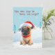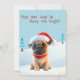 En söt bild av en pug sitta i en snö-bank. Den här söta hund har en ljusröd julhatt. Du kan ANPASSA den inre texten.