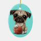 Cute Pug Puppy-Hund med basket Julgransprydnad Keramik