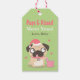 En söt julklapp märkre för att dekorera Julklapp! Den levereras med en söt liten pug klädd med en julhatt och en hundkrage. Den öppnar den låda som vår känner och julen hälsning på Pugs & Kisses! God jul!" Anpassa med ditt eget hälsning-budskap! På motsatt sida finns ett hjärta och ben mönster! Underbar för hundälskare!