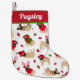 Julpuckel, Cute Pug Hundar i Festive Helgdag Outfit med vit bakgrund med eget namn.