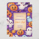Få redo att träffa dina gäster med den här charmerande inbjudan till Halloween fest! Med en härlig uppsättning klassiska Halloween-ikoner, inklusive vänligt spöken, leende jack-o’-lyktor och flödande fladdermus över hela gräns. Den här inbjudan anger perfekten för ett roligt-fyllt Halloween-firande. Den varma persikobakgrunden ger tillräckligt med utrymme för din händelseinformation. Inbjudan, som är förtjust i goda själar, kommer säkert att kalla alla dina favoritsjälar och pojkar till säsongens mest förväntade baser!