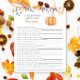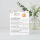 "En liten pumpa är på väg. Fira med den här tecknaden i baby, pumpa temat för babyduschen party! Vattenfärgssöt tecknad kawaii-pumpa med hösthatt (hatt) och höst löv. På baksidan av kortet finns höst löv.
