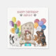 Cute hundar samlades alla för att fira den söta valpuppens födelsedag. Det finns ballonger, blommor, en skål mat och två ljus. Anpassa text som du vill.