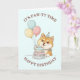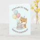 Celebrate their special day with extra puppy love. This cute birthday card features a sweet puppy sitting proudly in front of a birthday cake, wearing a party hat and holding colored balloons. This design is perfect for dog lovers of all ages. A joyful, feel-good card that brings smiles, wagging-tail energy, and birthday cheer to any birthday celebration.