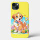 En iPhone 13 Fodral med en bild av en söt marionett sitta bland blommorna. Han ser mycket lycklig ut att vara omgiven av blommor och fjärilar.perfekten till ge de som puppen hundar i kärlek. Innehåller generativ innehåll.