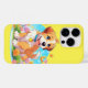 En iPhone 14 Fodral med en bild av en söt marionett sitta bland blommorna. Han ser mycket lycklig ut att vara omgiven av blommor och fjärilar.perfekten till ge de som puppen hundar i kärlek. Innehåller generativ innehåll.
