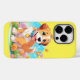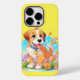 En iPhone 14 Fodral med en bild av en söt marionett sitta bland blommorna. Han ser mycket lycklig ut att vara omgiven av blommor och fjärilar.perfekten till ge de som puppen hundar i kärlek. Innehåller generativ innehåll.