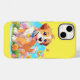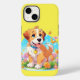 En iPhone 14 Fodral med en bild av en söt marionett sitta bland blommorna. Han ser mycket lycklig ut att vara omgiven av blommor och fjärilar.perfekten till ge de som puppen hundar i kärlek. Innehåller generativ innehåll.