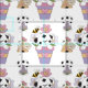Vita, svarta och vita fläckiga valpar med blommor och humlor som är särskilt trevliga för spädbarn och barn.
