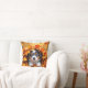 En söt marionett hund Hösten temade dekorativ kudde. En söt liten marionett hund som leker i en hög av Höst löv. Han håller på att kika ut på ett skickligt sätt när han gömmer i löv.