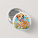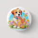 En knapp med en bild av en söt marionett sitta bland blommorna. Han ser mycket lycklig ut att vara omgiven av blommor och fjärilar.perfekten till ge de som puppen hundar i kärlek. Innehåller generativ innehåll.