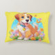 En accentkudde med en bild av en söt marionett sitta bland blommorna. Han ser mycket lycklig ut att vara omgiven av blommor och fjärilar.perfekten till ge de som puppen hundar i kärlek. Innehåller generativ innehåll.