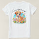 En kvinnas t-shirt med en bild av en söt marionett sitta bland blommorna. Han ser mycket lycklig ut att vara omgiven av blommor och fjärilar.perfekten till ge de som puppen hundar i kärlek. Parollen är "Little tassar, Big kärlek". Innehåller generativ innehåll.
