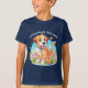 En t-shirt med en bild av en söt marionett sitta bland blommorna. Han ser mycket lycklig ut att vara omgiven av blommor och fjärilar.perfekten till ge de som puppen hundar i kärlek. Parollen är "Little tassar, Big kärlek". Innehåller generativ innehåll.