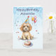 En söt Shih Tzu-marionett med party som sitter med en födelsedagskalas och några färgstarka ballonger. Perfektens för barn eller vuxnor som kärlek hundar. All text kan enkelt ändras.