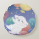 A cute fluffy white puppy with colorful balloons in night sky filled with stars