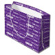 Pretty purple name collage large gift bag for a birthday decorated in nine different fonts spelling your name in white. Cute personalized gift with fun typography in white.