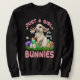 Cute Rabbit Girl flowers Butterfly Easter Bunny Ea Lång Ärmad Tröja
