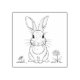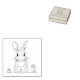 En gummi frimärke med en söt kaninillustration i spjutton för manuell verksamhet med barn och hantverk! Kaninen är sitta på benen med daisy blommor på båda sidor. Frimärke kan också användas för tillfälle som vår, Påsk eller babydusch.