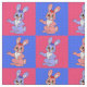 Kawaii Cute Rosa och Blue Bunny Rabbit kontrollerade Yta Mönster Fabric.