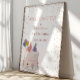 Celebrate a sweet milestone with this adorable illustrated Poster, featuring two pastel bunnies perched on a birthday cake beside a golden number one, balloons, flowers, and colorful confetti. The soft, whimsical artwork makes it perfect for a cheerful first birthday celebration.
