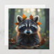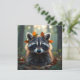 En berömvärd tvättbjörn sitta i en skog i hösten täckte Höst löv blankkort.