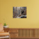 En berömvärd rackoon sitta i en logg, i snöbädd, en serenscen som fångas i en oljemålning på en pikturesk poster. Perfekt som ska samlas in som teckningar eller integreras i dina hantverk, t.ex. skrapbokning.