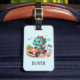 Personlig, förtjusande Dino Trex Racer-bagagetapp! Se som en söt dinosaurie kör en tävla bil, tänder uppståndelse och roligt. Perfekt för både dinosaurieentusiaster och tävla fläkt, denna viskartade utformning ger varje förskola charm och personlighet.