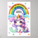 Ljusstark och färgstark regnbåge och Unicorn 3-födelsedag poster, ändra texten till vad du vill när du beställer. Det här tecknet konverteras lätt till storlekarna 20 x 30 eller 24 x 36 tum.