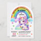 Ljusstark och färglös regnbåge och Unicorn 2-födelsedagsinbjudan, ändra texten till vad du vill när du beställer