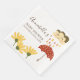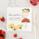 Den här charmerande anpassningsbarna babyduschnapkin har ett sött illustrerat tema i varmt och mysigt, färg hösten. Ett sött, litet regnmoln från lycklig visas överst och regnar över ett rött och gult-prickparaply. Rindropparna från regnmolnet visas i gult, brunt, orange och maronrött. En liten trädgård av gult daisy visas längs grund. Temat är perfekt för en Fall babydusch eller könsneutral babydusch under vilken säsong som helst.