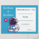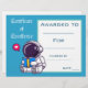 Ett färgstarkt utbildningsbevis för läsning som lämpar sig för använda av en lärare för ett skolklassrum eller en skolförsamlingspresentation. Detta blåastronaut-certifikat har en bild av en astronaut och kan vara personlig att inkludera student namn och personliga landvinningar. Även datum och lärares namn kan vara personlig. Enkel och enkel att fylla i. Bra lärares resurser.