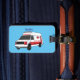 Den röda ambulansen i lycklig är på väg att hjälpa till! Ritad i roligt tecknad stil.