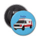 Den röda ambulansen i lycklig är på väg att hjälpa till! Ritad i roligt tecknad stil.