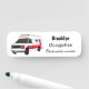 Cute red ambulance van tecknad namnbricka