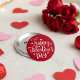 Sprid bra jublar över alla hjärtans årstid med den här söta och glada röda knappen som säger "Glad Alla hjärtans dag" i ett roligt dekorativt vitt skript med hjärtdetaljer.