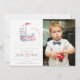 Cute Red Blue Sailboat Kids Photo Birth Inbjudningar