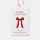 Märkre för julklapp med en enkel och minimalistisk utformning med en röd båge tillsammans med hälsning "God jul" och din familj namn.