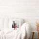 Klar jul dekorativ kudde med en enkel och minimalistisk design med rött båge över grund på ditt favoritkvadratfoto. Längst upp finns hälsning "God jul".