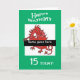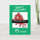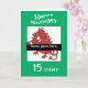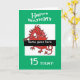Ett roligt-födelsedagskort som ska anpassas, med en söt liten röd drake som håller ett ställe för att lägga till mottagarens namn. Du bör också ändra åldern till mottagarens ålder. Den här designen passar alla tre gratulationskortsstorlekar.