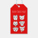 Märkre för julklapp med en hand plockade-illustration av sex amerikanska grodlöksborrar hundar på röd bakgrund. Det står "God jul" överst. Använda det här när du presenterar dina helgdag!