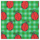 Cute red ladybug på grönt plaid burk tyg