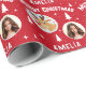 Cute Red Reindeer Kid`s Name Photo Merry Christmas Wrapping Paper. Cute deer on a red background with white snowflakes, stars and trees. This gift wrap has a name and a photo template - personalize it with your name and photo.