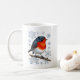 I mugg firas naturens nåd och den magiska snösäsongen där rödrovfågeln går i centrum och ger värme till den frostiga snöflingan.