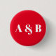 Cute red white anpassningsbar par monogram modern knapp. vit brev, röd bakgrund