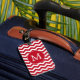 Dessa söta och moderna bagagetaggar har en röd och vit coola rand mönster och brev efter ditt val.